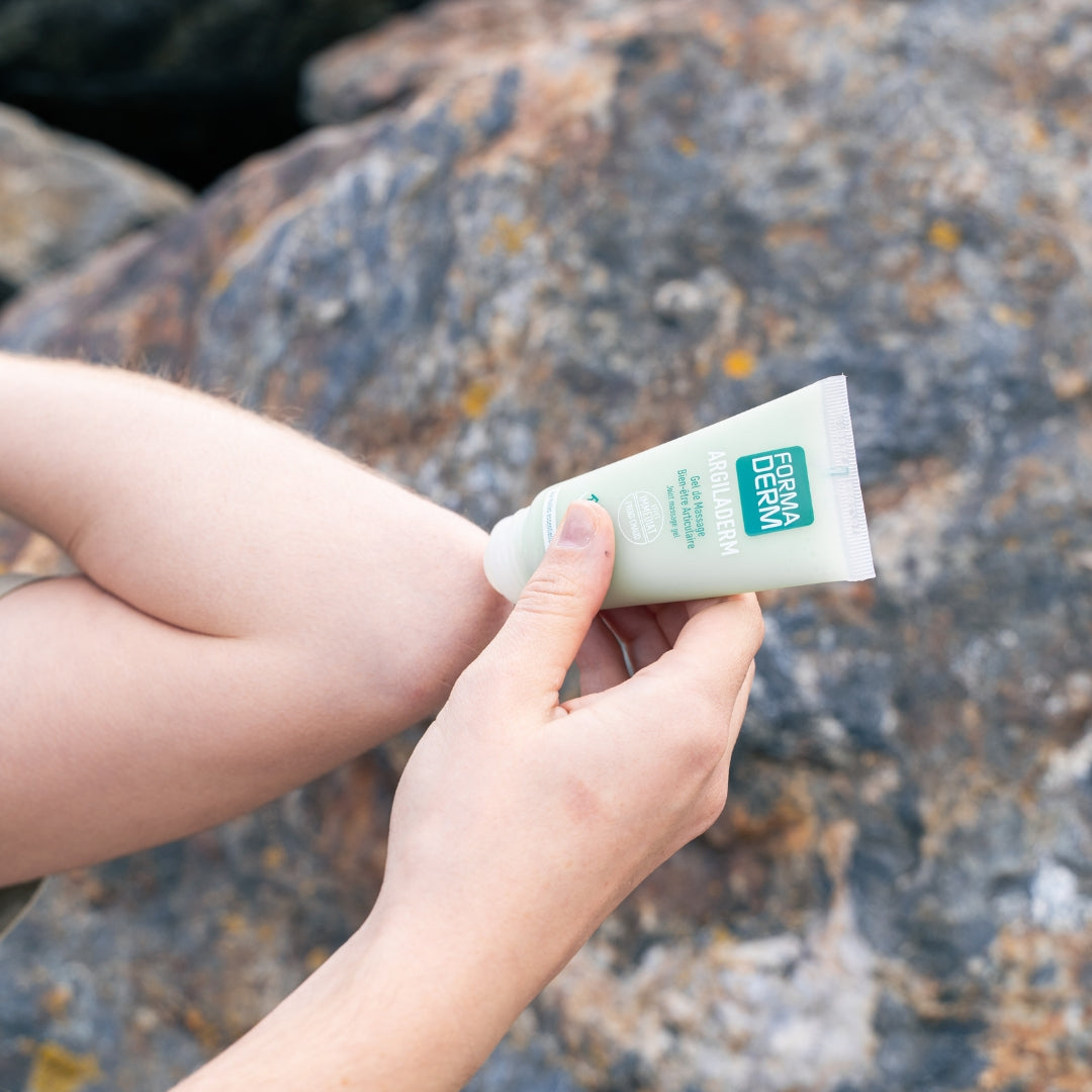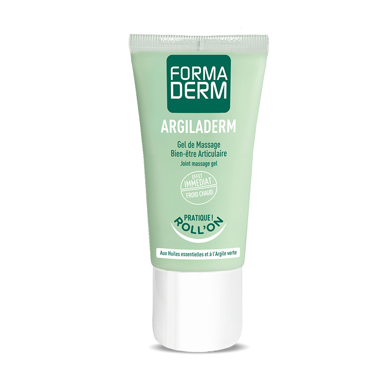 La bille massante du Roll-On associée à la formule du gel ARGILADERM, composé d'argile verte, d'extraits harpagophytum, prêle et d'huiles