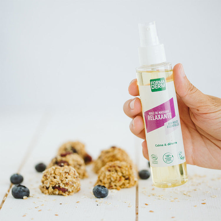 Aide à libérer les tensions du corps. Les notes d’orange douce, lavande et camomille favorise le calme et la détente. Sa texture fluide permet une parfaite glisse sur la peau sans laisser de sensation grasse.