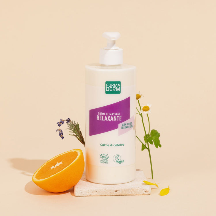 Aide à libérer les tensions du corps. Les notes d'Orange douce, de Lavande et Camomille favorisent le calme et la détente. Sa texture fluide et onctueuse permet une parfaite glisse sur la peau sans laisser de sensation grasse. Une peau souple et satinée.